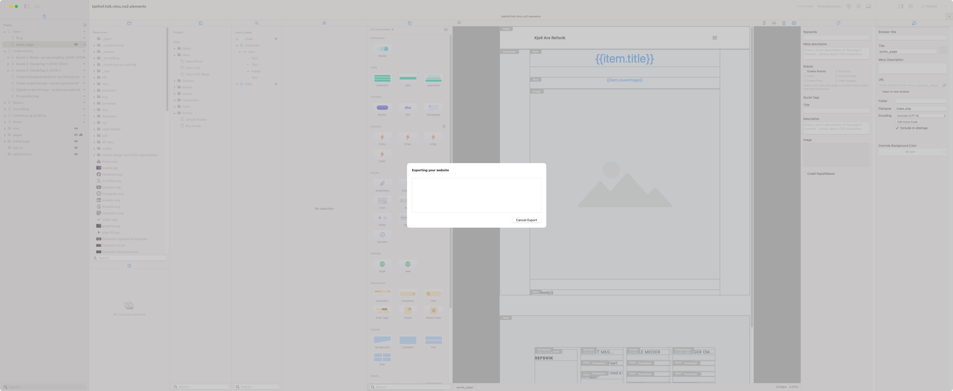 When you have the “posts_page” page selected and publish, I can see in the screenshot that you have an empty export progress window. Are you always able to reproduce this, and what happens if you leave it for a while, does it eventually move on?