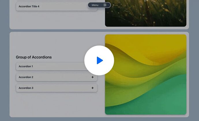 Fill your boots, I started this project needing an accordion with 7 accordions and seven pictures that changed on each accordion, I posted this last week. I then thought what else can I do so added a matching video that changed with each accordion, achieved that then today with Gary’s help (@Doobox) I added a PDF in second column and I am working on audio at moment. I can make as many accordions I need however the part was to have a changing image/PDF/Video?audio in second column and hence why I went on custom HTML root as Elements accordion does not do this. SO my ideal would be an Elements accordion with a code to fill right hand column in. Away you go! TIA