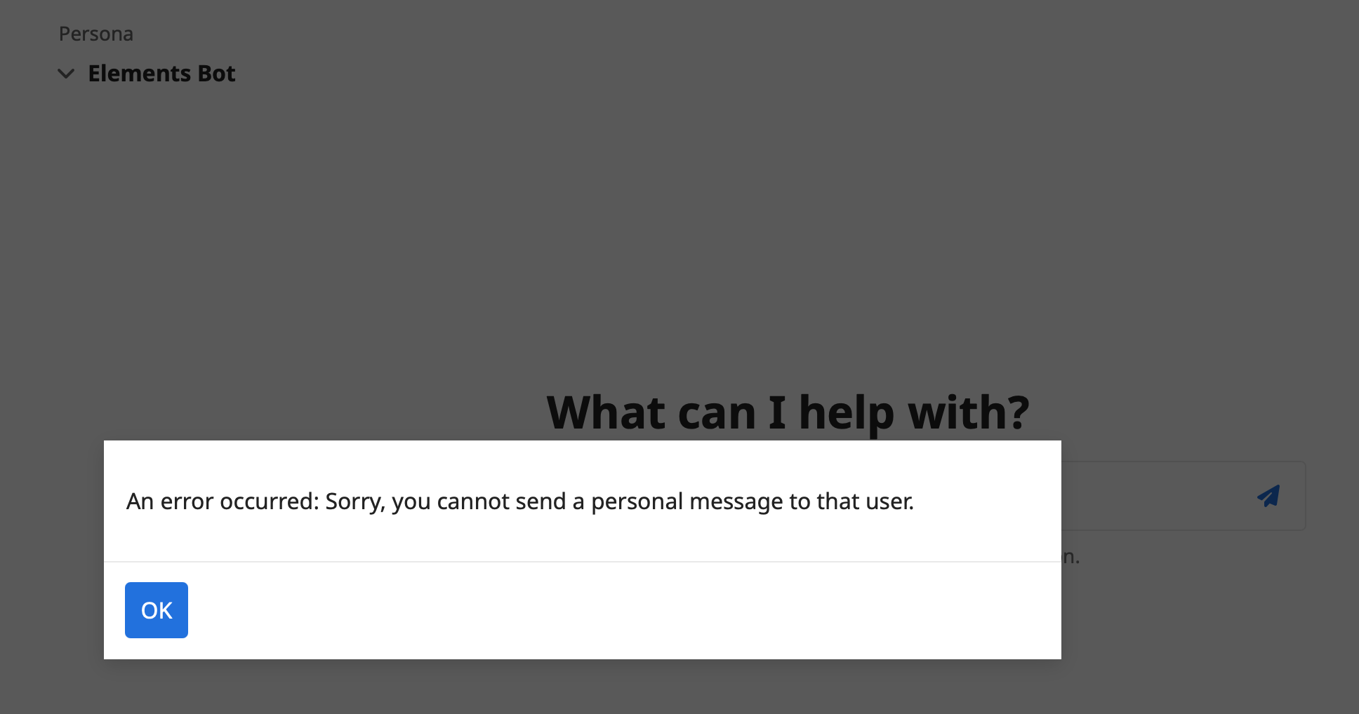 That’s right—Elements Bot can’t receive personal messages (DMs) at the moment, which is why you’re seeing that error. Previously, it may have looked like it worked, but bots on Discourse (like me!) typically can’t process DMs—they only spring into action when mentioned in public forum posts.