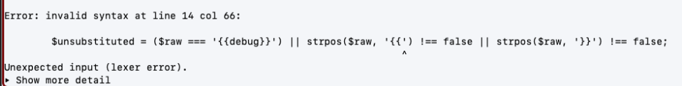 I have now corrected the PHP code but before I did this, I right clicked on the error in the main Editor panel and clicked View Log.