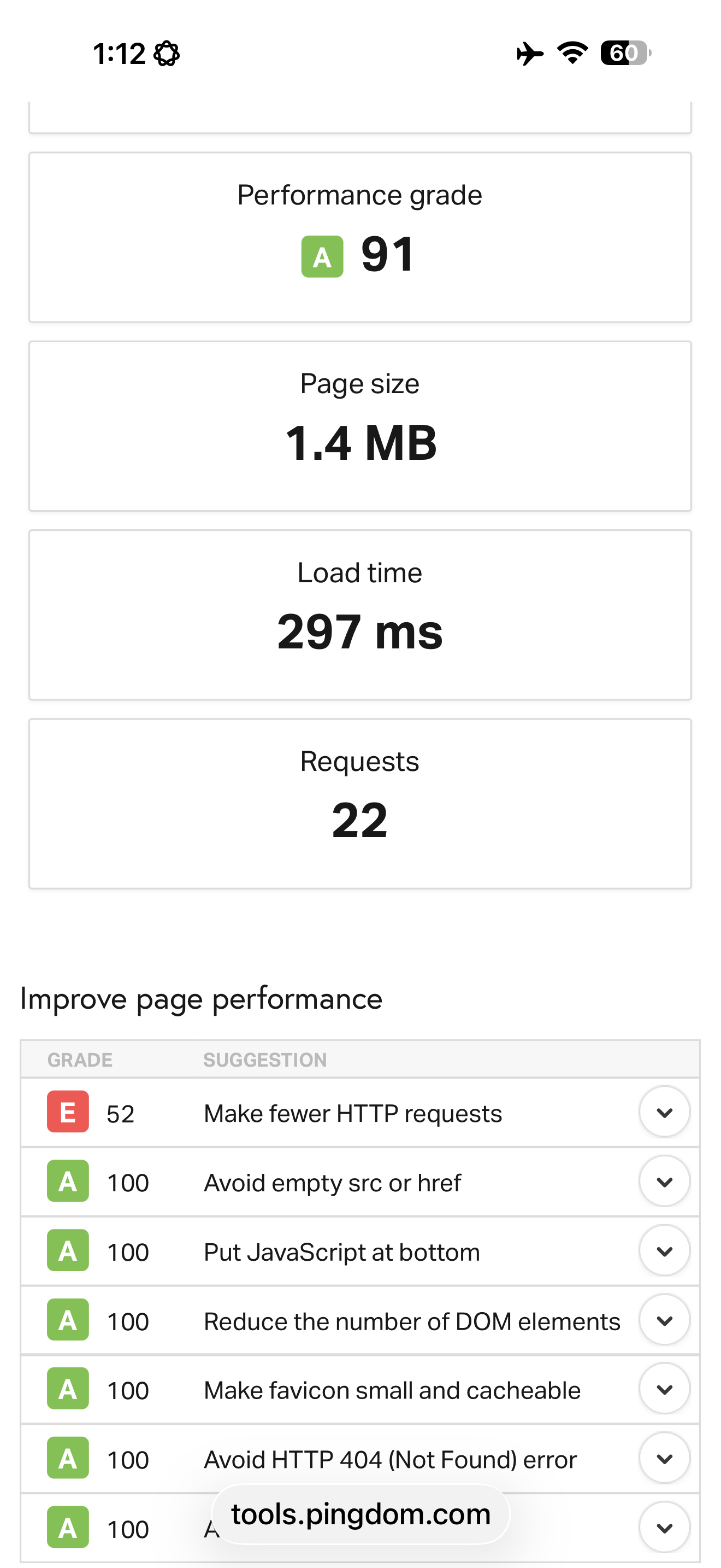Glad it shows at least 91 on pingdom (still bad for a coming soon page with a bit of text, an svg logo and a 46kb webp background image), but it should score good on google’s page speed, since google is the search engine that eventually decides over the ranking of any website in the serps.