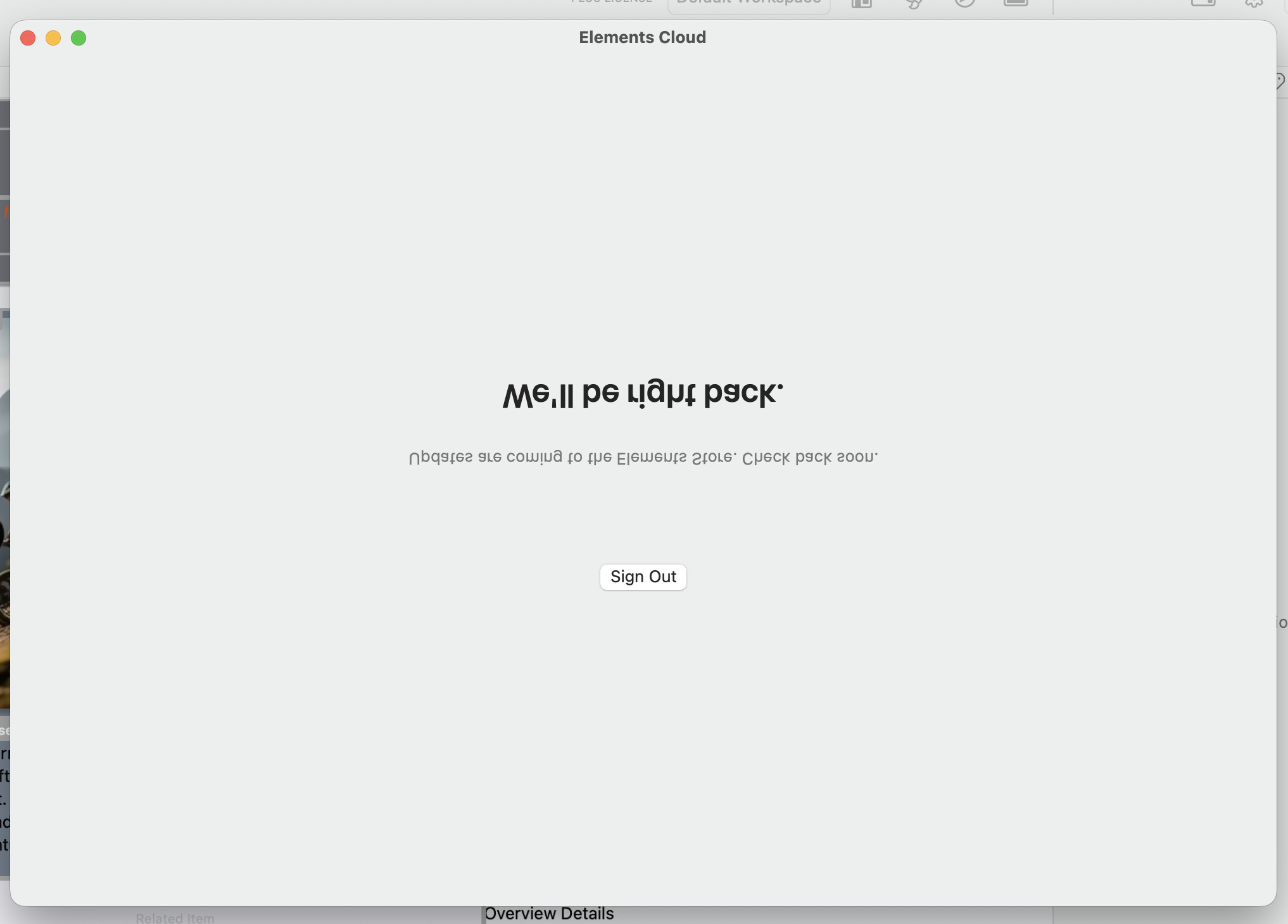 If youâve experienced a network interruption, or are still having issues connecting to the store, please restart Elements and try again.