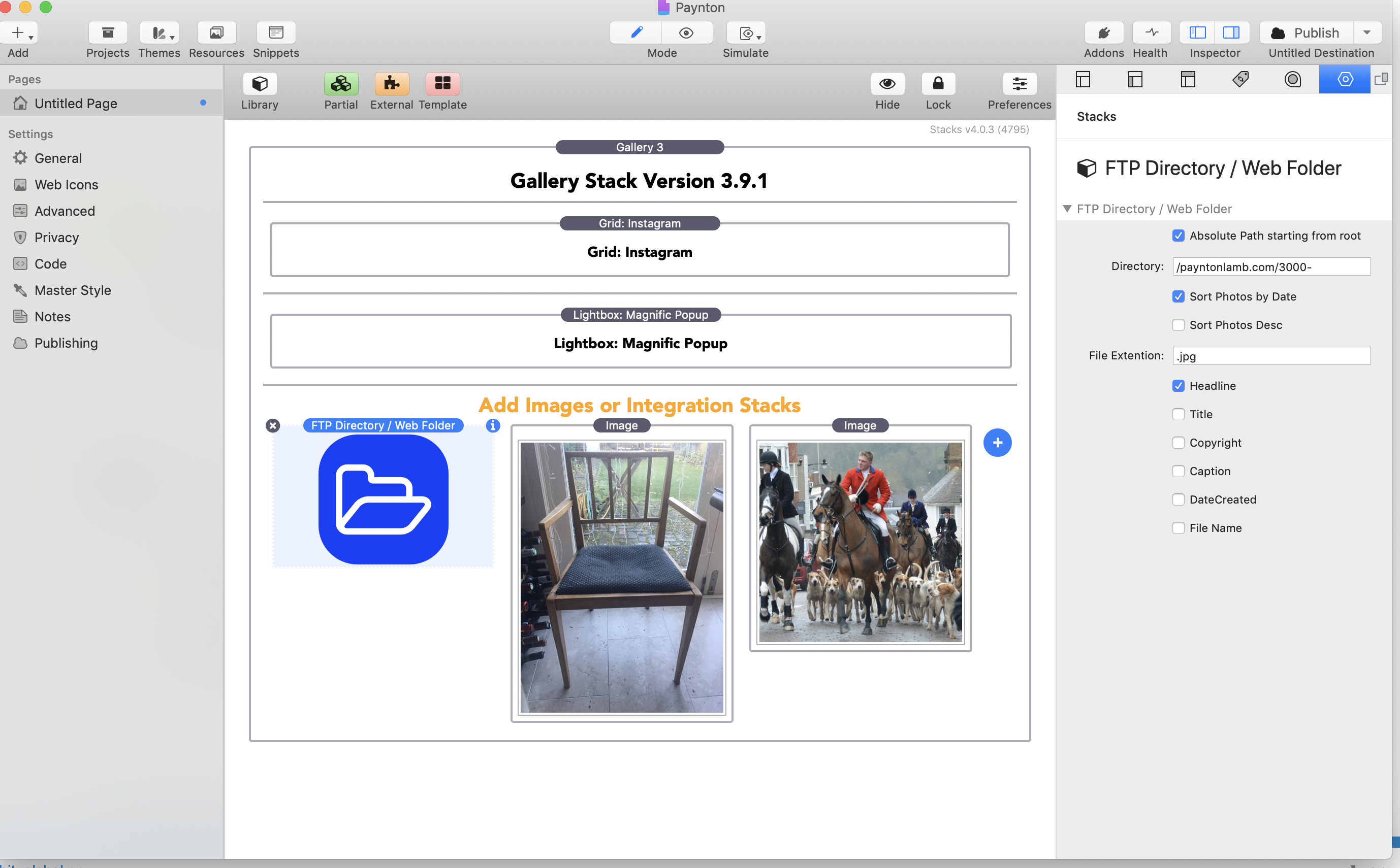 Instacks Gallery 3 was recommended, so I bought that. I’ve uploaded a test folder of images, but wrestling with Gallery 3 it now seems that I require an additional stack called Remote Image to make this work. On further investigation it seems that this is only available if I buy a whole new stack called Repository Stack.