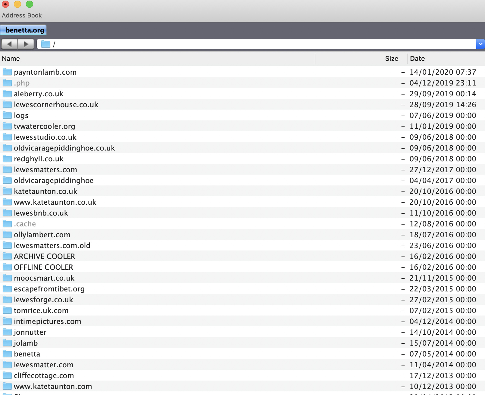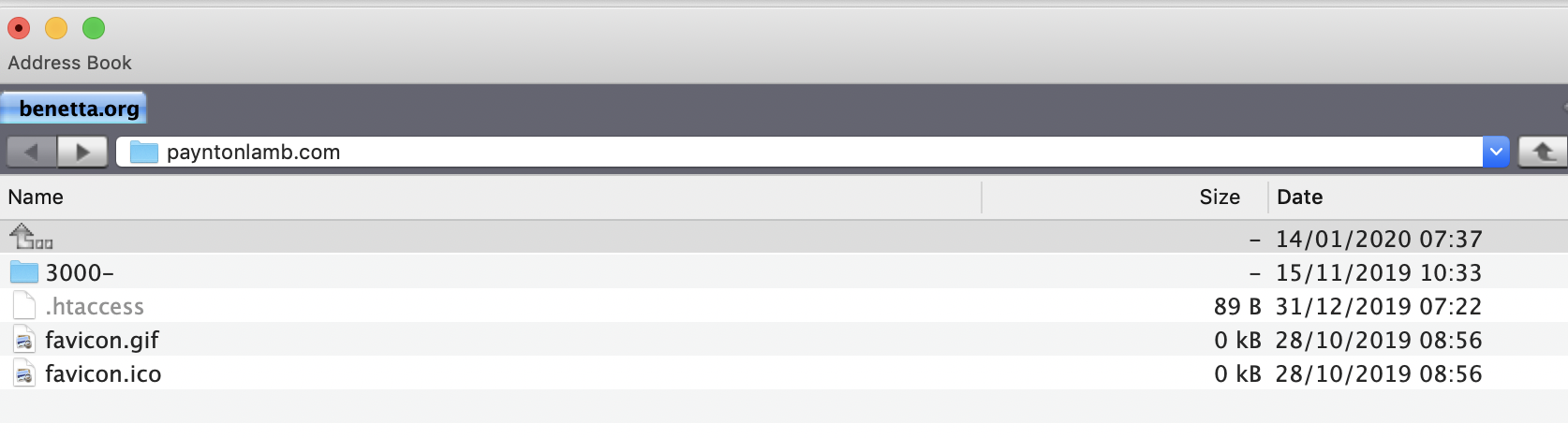 I’ve experimented with every mutation of the path to the director but nothing comes up in preview. This is a screenshot of my Dreamhost server space; the file is in the payntonlamb . com folder. So does the file need to be in the benetta . org directory or in the payntonlamb directory (which I’ve also grabbed)?