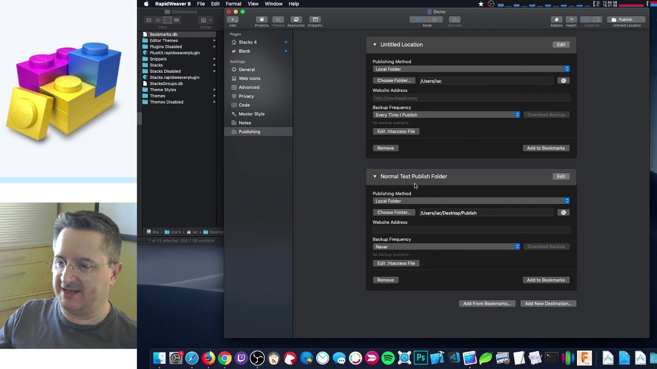 My problem is that I am only a casual user of RW, so opening it to start a new site meant a lot of updates. A year ago, I installed a SSD & moved the RW files to an external drive. When I ran RW, I think thats where all the different folders came from. It didn’t want to run from external drive, so I moved RW to boot drive. Then I compounded it by my zealous instinct for tidiness. My files/ etc go back to 2009, so I had a lot of STUFF. I didn’t realize I could purge STUFF till I saw Isaiah’s video mentioned above.