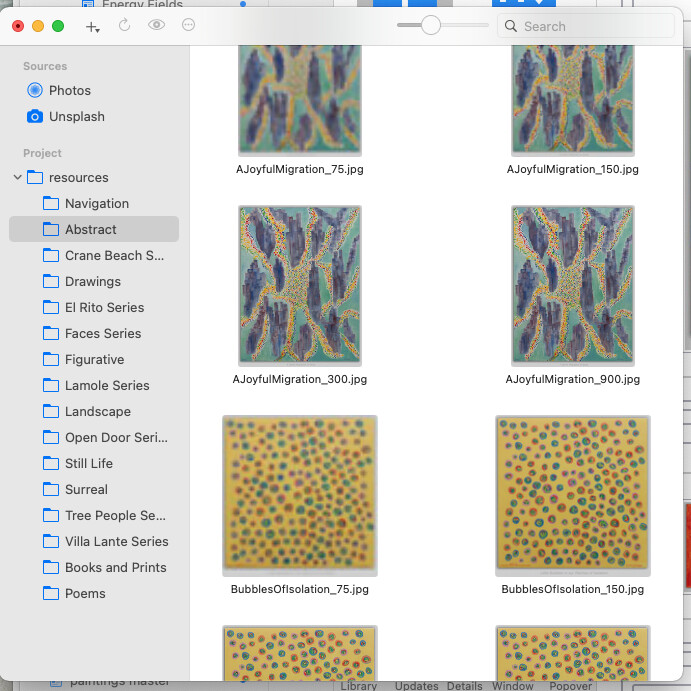 I’m a Dreamweaver convert to Rapidweaver and have read what I can find and watched quite a few of the videos on RW and Stacks. My site is all about images which I resized for my DW site and stored in subfolders beneath my “images” folder. My site has over 200 hundred paintings and each is resized for the web four different variations. When I added them to resources I put them in folders by my former categories. But when I use the “site image” stack the images do not show up in preview nor in view with a browser. In a former post I see that someone solved this problem by moving them all out of the subfolders.