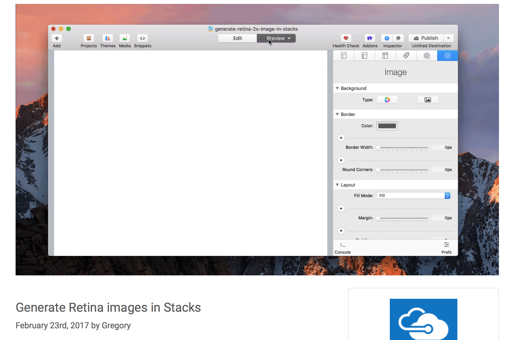 Toggle the RapidWeaver page inspector in Stacks