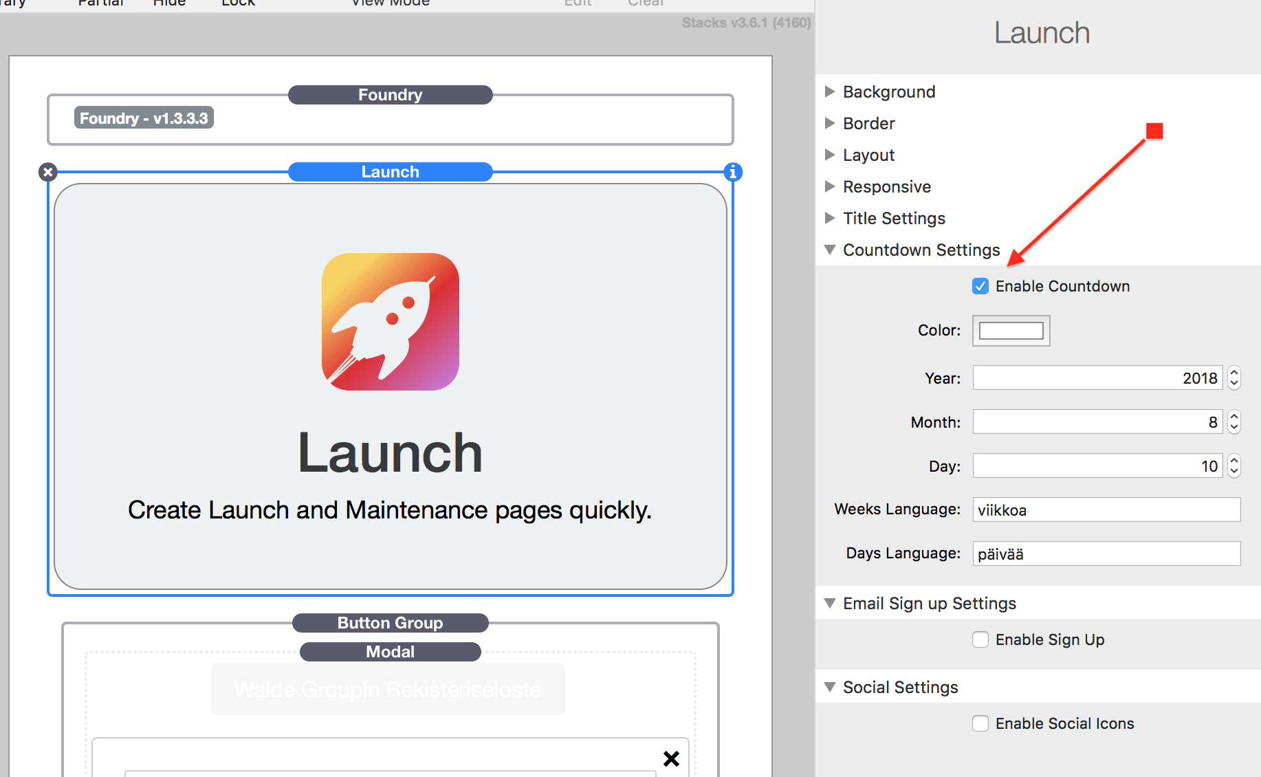 I use the Landing Countdown Stack from Yuzool to display how long until a training course starts, but could do with taking off the hours, minutes & seconds. So that it only displays the days.
